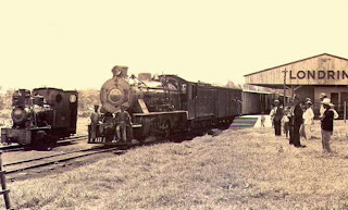 A Companhia de Terras norte do Paraná pensou em tudo. Como a nossa terra argilosa se torna quase que intransponível em dias de chuvas, logo no começo a Companhia já iniciou os trabalhos da construção da ferrovia de Ourinhos a Londrina e depois com o tempo até Maringá. Apesar da floresta virgem os imigrantes e migrantes aqui chegaram trazendo tudo o que precisavam nos trens. As primeiras produções era exportadas pelos trens. Os primeiros animais (cavalos, gado, galinhas e porcos) vierem de trem. Não foi fácil construir a ferrovia no meio da selva, sem poder contar com máquinários modernos. A maior parte dos serviçoes eram feitos no enxadão e carregando a terra com carroças puxadas por muares. A estação de Londrina foi inaugurada em 1935, no mesmo dia em que a ponte sobre o rio Jataizinho foi inaugurada, dando passagem ao trem, que chegava a uma cidade que havia crescido muito desde sua fundação em 1929. No início de Londrina e do norte do Paraná tudo girava em torno dos trens. Quando a Maria Fumaça apitava lá na curva o chefe da Estação tocava um sino (que está lá até hoje) e muita gente vinha para conferir quem estava chegando e quem estava viajando. Todas as novidades chegavam no trem. Os homens iam lá para ver as mulheres. As mulherem iam para ver as roupas diferentes vindas de São Paulo. Outros iam ver só o trem, afinal era uma máquina que dava medo...aquele assopro quando o maquinista soltava o excesso de vapor....a molecada corria de medo. Muitos iam só para dar tchau para quem partia ( Era chique dar tchau para quem partia.) Bem, em resumo era isto...o trem fazia (e faz) parte de Londrina e de todo o norte do Paraná.